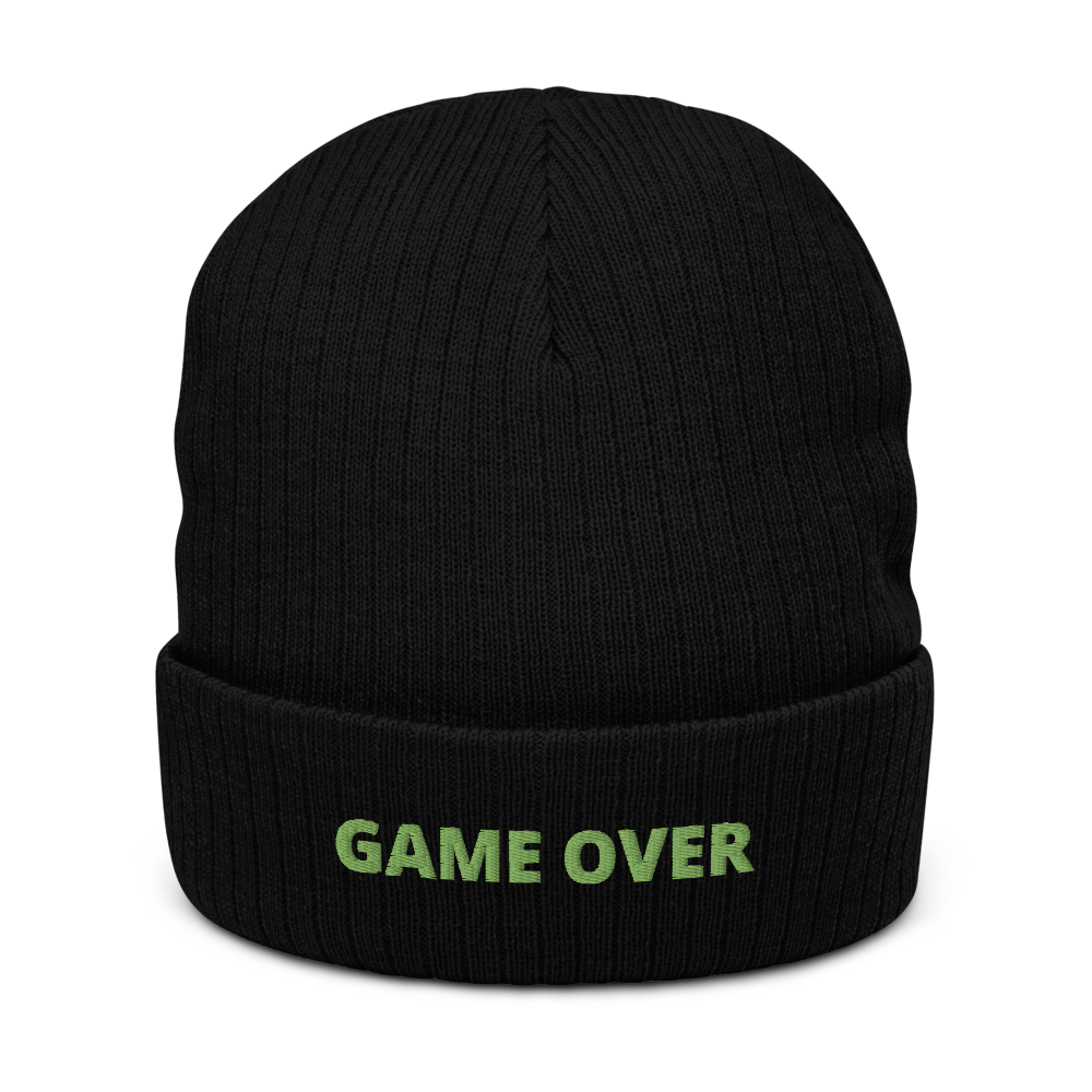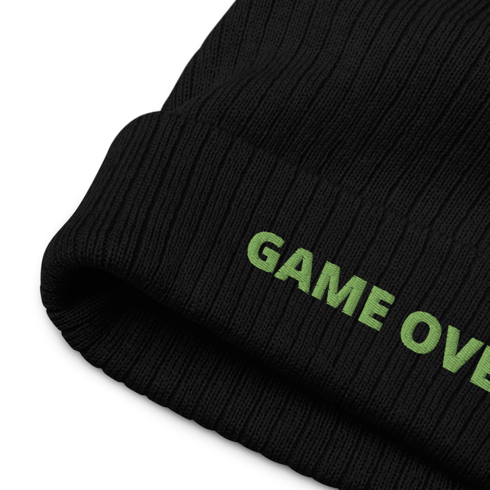 Game Over Beanie Recycled Eco-Friendly Embroidered Black Beanie for Gamers